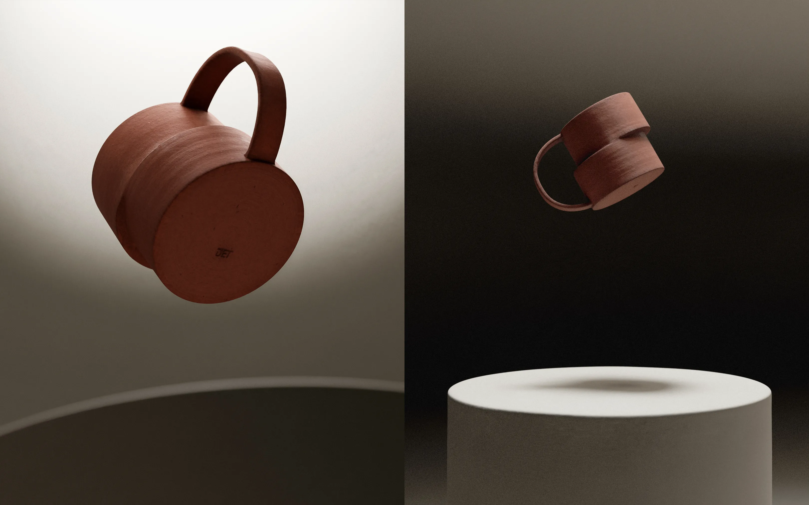 Exploring form, light, and gravity. An exploration of balance, motion, and three-dimensional perception through the digital reinterpretation of real, handcrafted objects. The cups featured in this series exist in the physical world and were faithfully translated into fully 3D-rendered forms.